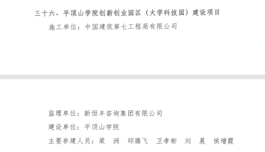 近日,从河南省工程建设协会获悉,平顶山学院创新创业园区(大学科技园)建设项目荣获“2025年度下半年河南省工程建设安全文明标准化工地”称号。此项荣誉是我省建筑行业在安全生产、文明施工领域的最高评价之一。